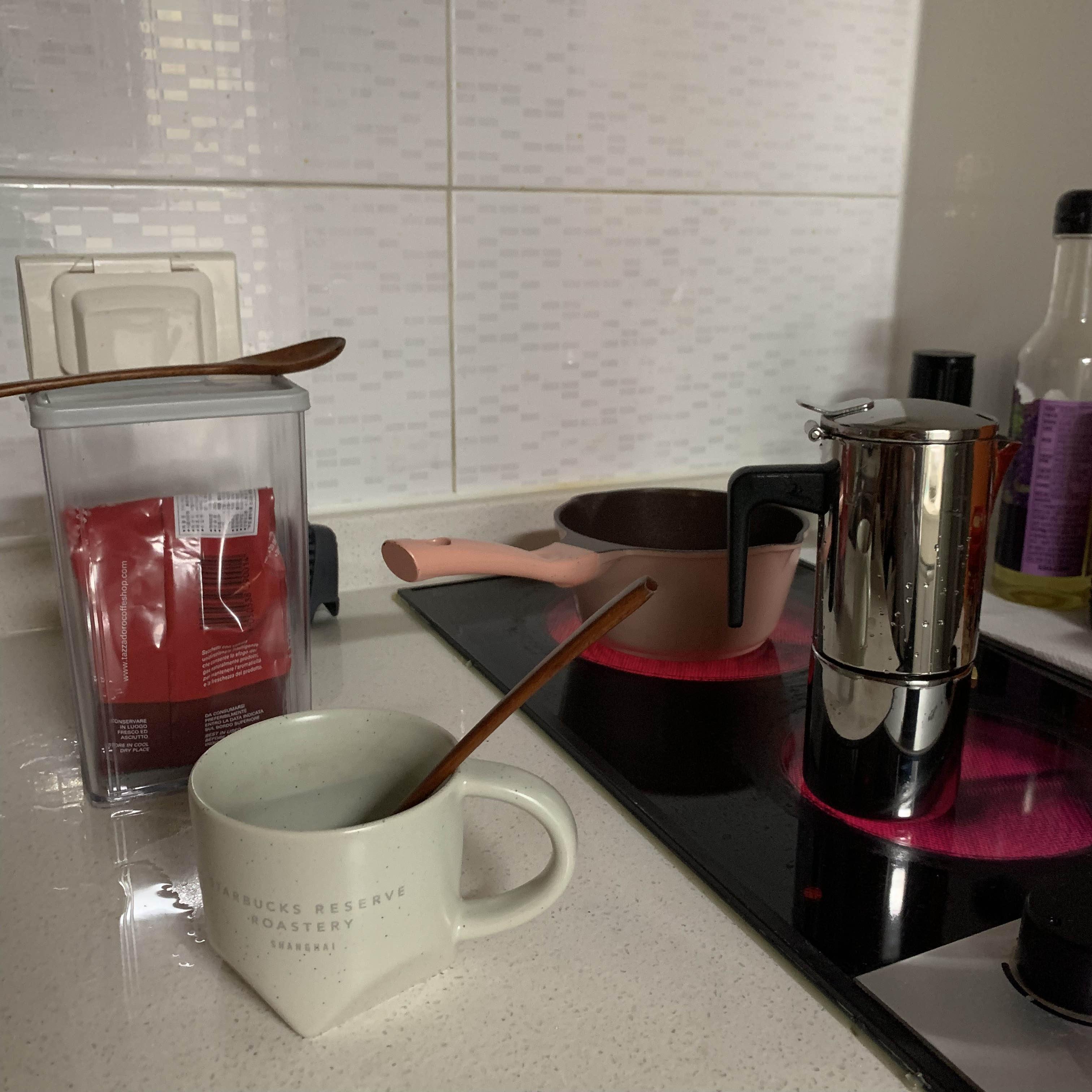 주방쪽에는 인덕션, 붙박이 냉장고, 세탁기, 작은 싱크대가 있어요. 조리대가 정말 좁아서 뭘 만들어먹기 수월한 구조는 아닌데 그래도 저는 불편해도 많이 만들어 먹었던 것 같아요. 특히 냉장고가 붙박이이고 혼자 쓰기에 널찍하고 예뻐서 정말 마음에 들었던 것 같아요.